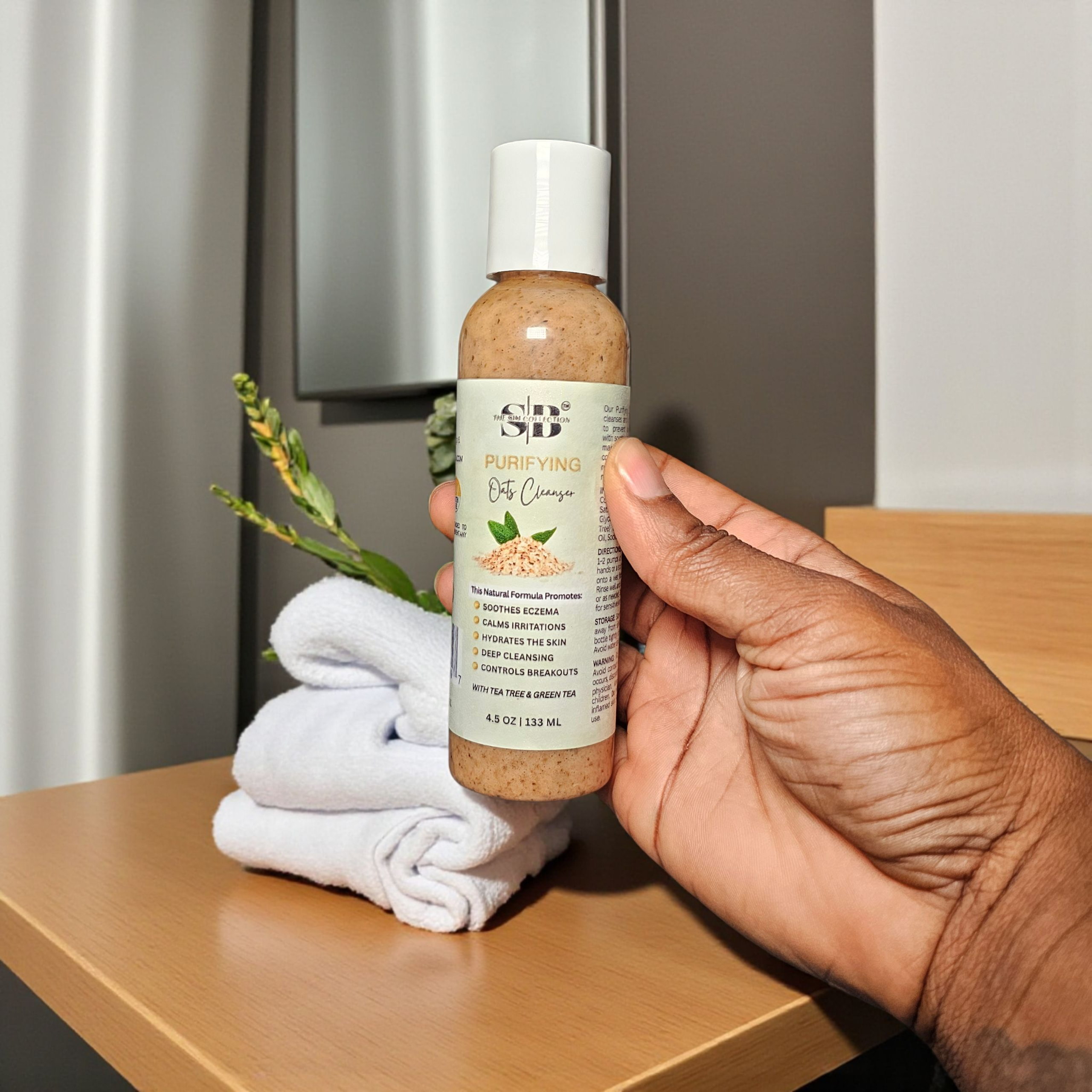 Reveal naturally radiant, calm, and balanced skin with our Purifying Oats Cleanser. This gentle but effective formula mixes the deep-cleaning benefits of tea tree and eucalyptus oils with the calming nourishment of oats and green tea extract. Designed to comfort sensitive and irritated skin, it removes impurities and excess oils without stripping away essential moisture.